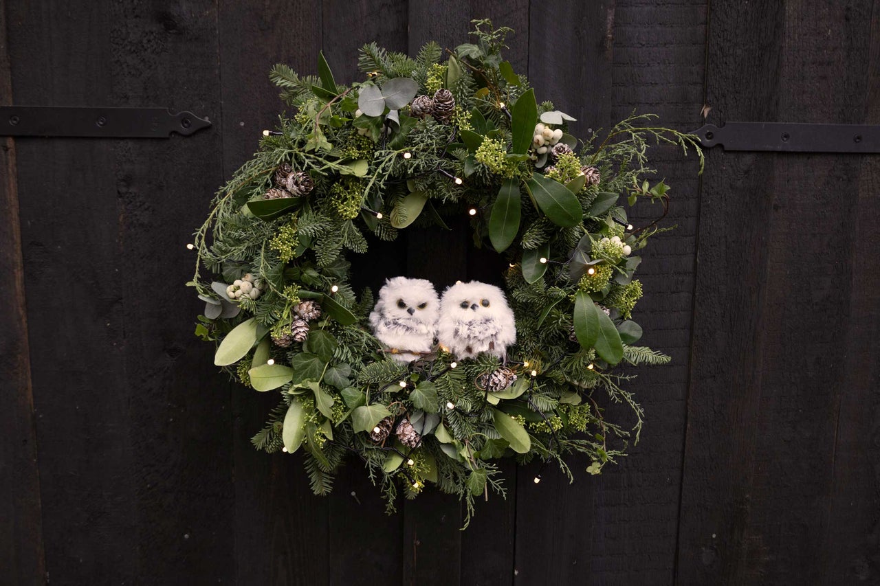 Placera din färdiga julkrans där den gör sig bäst – på dörren, väggen eller som en lysande dekoration på bordet.