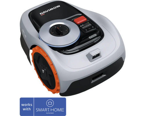 Navimow robotgräsklippare med styrelement och Smart Home-logotyp