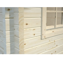 Attefallshuset PALMAKO Helena 15,1 m², som förbehandlats genom en grå doppimpregnering, är en riktig klassiker bland trädgårdshusen. Byggnaden i 70 mm tjocka limträstockar är mycket robust och ger ett gediget intryck. En bas för livliga trädgårdsfester eller en säker borg för trädgårdsredskap. Även det golv som ingår i leveransen klarar av många danskvällar. Öppna dubbeldörren med isoleringsglas och fönstret vid vackert väder och släpp in sommaren. Dörren består av en limmad karm. Vi har också tänkt på säkerheten – ett profilcylinderlås, en låscylinder och dörrhandtag ingår nämligen. Du kommer att bli förvånad över hur mycket plats Sally har på sina 450 x 360 cm. Taköverhänget är 142 cm och skyddar mot väder och vind. Den totala takytan med taköverhäng är 27,6 m² och består av 19 mm tjocka spontade brädor. Sally med en nockhöjd på 285 cm och takfotshöjd på 216 cm blir den nya medelpunkten i trädgården. Friggeboden (utan tak) har redan genomgått en doppbehandling och ska slutmålas efter monteringen. Som tillval för byggnaden finns takpapp, takshingel, takavvattning, blomlådor, bod och skyddstak.