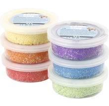 Självhärdande modelleringsmaterial med små pärlor - levereras i praktiska, lufttäta plastburkar som används till förvaring - ha alltid locket på.
