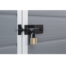 Förutom sadeltaket ingår även golvplattan till det grå plastskjulet. Dina redskap är alltså skyddade från alla riktningar. På gavelns sida finns en ventilationsöppning. De olika delarna är lätta att montera. Det beror på byggsatsens praktiska plugin- och skruvsystem. På en av sidorna finns ett fönster som släpper in lite ljus i rummet. Det moderna förrådet klarar också svåra väderförhållanden och är dessutom UV-beständigt, vilket gör att färgen inte bleknar så lätt. Plastskjulet kännetecknas också av att det kräver lite underhåll, då varken målning eller impregnering behövs. Den klassiska formen på sadeltaket innebär att snö vanligtvis inte orsakar några problem, eftersom den oftast glider av åt sidan. Enligt tillverkaren är den maximala snölasten 0,74 kN/m².