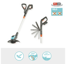 Kraftfull och lätt batteridriven trimmer för enkel trimning Enkel grästrimmer utan sladd: den batteridrivna trimmern EasyCut 23/18V P4A gör det lätt för dig att forma gräsmattan. Även på svårtåtkomliga ställen! EasyCut 23/18V P4A har en mycket låg vikt, något som gör den väldigt bekväm att använda. Du kan använda den sladdlösa trimmern länge utan att trötta ut dina armar.Den batteridrivna trimmern EasyCut 23/18V P4A är kompatibel med alla 18V POWER FOR ALL ALLIANCE-batterier. Beroende på typ av batteri som används kan batteritiden vara upp till 135 minuter eller trimning av upp till 3375 m gräskant. Efter snabbt monteringsarbete är EasyCut 23/18V P4A redo för användning. Innan du börjar använda trimmer ska du först anpassa den efter dina behov. Såväl det främre handtaget som teleskopskaftet är justerbara. Det innebär att du hela tiden kan arbeta i en upprätt och bekväm ställning. LED-indikatorn på handtaget visar batteriets laddningsnivå under användning. Vill du klippa under hinder? Då kan du anpassa trimmerhuvudets vinkel. Man har också tänkt på växter i exempelvis en rabatt intill en gräsmattekant. Den utfällbara och avtagbara växtskyddsbygeln ser nämligen till att dina blommor och buskar är väl skyddade. GARDENA batteridriven trimmer EasyCut 23/18V solo levereras utan laddare och batterier. Du kan använda ett 18V-batteri från POWER FOR ALL ALLIANCE, som är en av de största batteriallianserna mellan ledande varumärken. Dessa batterier är kompatibla med många produkter i och runt hem och trädgård – det betyder att du inte längre behöver ett nytt batteri för varje produkt. På detta sätt sparar du pengar och är flexibel. Vill du köpa en produkt med batterisystem? Inga problem – då är setet Ready-To-Use rätt för dig. Power för dina idéer