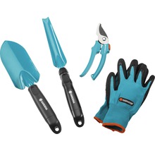 GARDENA Startset Handredskap ger en bra start på trädgårdsskötseln och en glimt in i GARDENA:s värld av handredskap. Detta praktiska startpaket inkluderar planterspade, rotjärn, sekatör och ett par planteringshandskar. En trevlig introduktion till trädgårdslivet eller varför inte som inflyttningspresent till nyblivna husägaren.