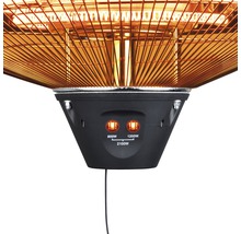Den takhängda värmefläkten är den rätta lösningen om det går bättre att stråla värmen uppifrån än från en vägg. Så är fallet om det saknas en vägg i omedelbar närhet, till exempel mitt i trädgården eller på ett dansgolv. Den takhängda värmaren ger då behagliga temperaturer inom en radie på några meter. Effekten kan ställas in i tre lägen från 900 till 2100 watt. Partyvärmaren med en vikt på 3kg kan enkelt monteras upp och plockas ner efter användning.