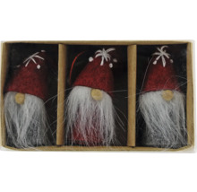 Tre små tomtar med stora personligheter! Med sina röda luvor och glada uttryck sprider de julstämning i varje gren. Perfekta för dig som vill ha en gran som ler tillbaka.