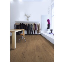 Om dina golv utsätts för extra hög belastning ska du välja en modell som är lämplig för detta ändamål. Silence Oak med en tjocklek på 12 mm är det perfekta valet för detta. Produktegenskaper för laminatet 12 Silence OakFörutom den synkrona ytan, den optiska och haptiska ytstrukturen har laminatet Silence Oak en beläggning som minskar elektrostatisk laddning. Denna golvbeläggning i bruksklass 33 klarar av hög belastning i starkt trafikerade utrymmen. Det utsläppsfria materialet som är tilldelat ett ECO-certifikat lämpar sig också att använda över vattenburen golvvärme. Alla fyra laminatdelarna i förpackningen är tillverkade av HDF med minimal svällning. Laminatet i trämönster läggs enligt Fold-Down-principen och har en riktig omgivande V-fog. Tack vare sin tålighet lämpar sig laminatgolvet Silence Oak såväl för privata ändamål som för starkt trafikerade rum i offentlig miljö. Det perfekta golvet för extrem belastning.