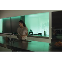 Ljus ljusslinga av hög kvalitet, 16 miljoner färger och varmvitt till kallvitt ljus, styrs via Hue Bridge och Bluetooth, imponerar med sin enastående flexibilitet, kan förlängas till en längd på 10 m, avklippta delar kan användas med ytterligare ett Lightstrip startset