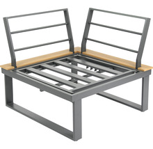 Loungegrupp GARDEN PLACE Eila aluminium 3-delat 237x237cm 7-sits inkl. bord 120x70x69cm och bänk 110x43x34cm i träimitation sittdynor ljusgrå
