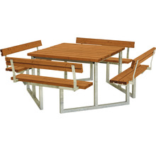 Picknickbord PLUS Twist 4 ryggstöd trä/stål 227cm teakfärgad
