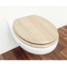 Denna toalettsits med träkärna har ett plastöverdrag av valnöt som knappt kan skiljas från en sits av massivt trä. Tack vare denna typ av tillverkning är sitsen stabilare än en sits av äkta trä och därmed också lämplig för hotell och värdshus. Justerbara gångjärn av förkromad mässing gör att den passar till de flesta vanliga toaletter. De släta ytorna gör toalettsitsen enkel att rengöra.
