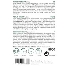 - BruksanvisningSå inomhus i såjord i februari-april. Så grunt. Gror efter 7-10 dagar vid 20-25 grader. Hög groningstemperatur är viktig. Odla sedan svalare. Plantera om i krukor med plantjord. Odlas i växthus i stora krukor eller planterade i jorden. Bind upp plantorna och plocka bort alla sidoskott i bladvecken. Ruska lätt på blomklasen för gynnad fruktsättning. Toppa ev plantorna efter 5-6 klasar. Gödsla och vattna ordentligt.