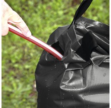 Trädbevattningssäck, PVC, 75l, antracit med blixtlås, kvalitet: 400 g/kvm. Trädbevattningssäcken är avsedd för en trädstam upp till 18 cm i diameter. Om stammarna är större kan blixtlåset användas för att sätta ihop flera trädbevattningssäckar.