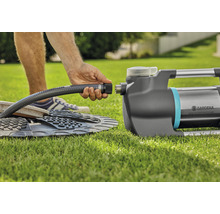 Trädgårdspumpen 6300 SilentComfort från GARDENA är både kraftfull och energisnål. Den möjliggör användning av brunnsvatten eller regnvatten till att vattna trädgården och drar vattnet från ett djup på upp till åtta meter. Med en strömförbrukning på endast 1 050 watt är den jämförelsevis energibesparande tack vare effektiv hydraulik, och uppnår en strömningshastighet på 6 300 liter per timme vid en pumphöjd på 49 m (4,9 bar). Trädgårdspumpens innovativa vattenkylda flerstegsteknik som utvecklats i Tyskland garanterar enastående tyst drift med en låg ljudnivå på 58 dB(A). Denna teknik kräver ingen fläkt eftersom spillvärme avleds via vattnet. Detta ger imponerande hög effektivitet och minimal bullerutveckling. Förutom att skapa ett bevattningsschema kan alla funktioner ställas in på traditionellt sätt via enhetens upplysta LCD-skärm, och pumpen kan givetvis även slås på och av. Barnlåsfunktionen förhindrar oavsiktlig användning av barn. Alla funktioner kan fjärrstyras upp från ett avstånd på upp till 10 m via Bluetooth-anslutning till en smartphone eller surfplatta. Pumpen har även andra funktioner, exempelvis att skapa bevattningsscheman, sätta en timer eller påminna om nästa filterrengöring. När du startar pumpen för första gången visar steg-för-steg-instruktionerna i appen hur du kommer igång. Tillvalet GARDENA Fuktighetssensor (art. nr. 1867-20) garanterar att dina växter får optimal vattentillförsel och förebygger att vatten går till spillo. Den väderbeständiga pumpen är lämplig för utomhusbruk och kan därmed förvaras utomhus under hela trädgårdssäsongen. Den påverkas inte av regnigt väder eller hög luftfuktighet till följd av dimma. Därför är korta, effektiva vägar till vattentillgången möjliga. Tack vare sina gummifötter står den elektriska pumpen stadigt. För att förhindra att smutspartiklar som sand kommer in i pumpen finns ett inbyggt pumpskyddsfilter vid ingången. Trädgårdspumpen 6300 SilentComfort skyddas av ett torrkörningsskydd, och stängs tack vare två sensorer av automatiskt om motorn eller vattnet blir för varmt. På grund av användningen av högkvalitativa material som ett vatten- och motorhölje i rostfritt stål och handtag av aluminium är pumpen robust. Genom att använda vattenförråd som brunnar eller regntunnor sparas värdefullt färskvatten. Ett smart val för både plånbok och miljö, särskilt under torra somrar. Trädgårdspumpen har en keramisk tätning med ett dubbeltätningssystem och en axel i rostfritt stål mellan hydrauliken och motorn. Suganslutningen och de två utgångarna, varav en kan vridas 180 grader, är tillverkade av rostfritt stål. På så vis kan du använda flera enheter samtidigt. Den stora fyllningsöppningen och dräneringsventilen gör pumpen extra lätt att fylla och skyddar mot frost. Tack vare alternativet direktstart kan du integrera trädgårdspumpen i GARDENA smart system med hjälp av den smarta strömadaptern (art.nr. 19095/19096-20) som finns att köpa separat. GARDENA erbjuder fem års garanti på den här kvalitetsprodukten när den har registrerats online.