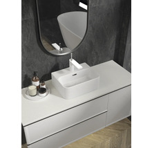 Vägghängt eller ovanpåliggande – THREE i tunt vitt porslin skapar ett strålande intryck i vilket badrum som helst.