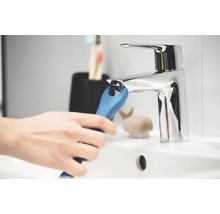 Vi har omarbetat GROHE Starts design och förbättrat prestandan så att du ska kunna modernisera ditt badrum i en handvändning. Blandaren GROHE Start i S-storlek och markant och elegant mattsvart färg kommer i en smal, tidsenlig design. En högre pip ger ännu mer användarkomfort. Bottenventilen styrs av en lyftstång och öppnar och stänger sig när du trycker lätt med fingret. Den energibesparande och slitstarka keramiska GROHE SilkMove-insatsen säkerställer precis kontroll av vattenflöde och -temperatur via den solida, slitstarka metallspaken. Tack vare att endast kallt vatten fås med spaken i mittenläget, undviker du slöseri av energi. GROHEs vattenbesparande teknik begränsar vattenförbrukningen till 5,7 l/min, utan att du behöver kompromissa med flödet. De isolerade, inre vattenvägarna säkerställer att vattnet som kommer ut ur kranen garanterat är bly- och nickelfritt. Med den glänsande och samtidigt slitstarka GROHE Long-Life Shine-ytan kommer den här kranen att hålla sig snygg i många år framöver. Överraskande enkelt: Blandaren är designad för etthålsmontering och med hjälp av GROHE QuickTool, QuickGuide och QuickVideo, som du får tillgång till genom att skanna en QR-kod, kan du montera kranen på nolltid.