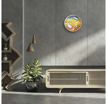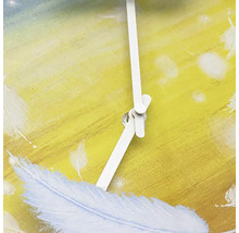Den tysta väggklockan NeXtime Feathers (30 cm) är ett konstverk med svävande fjädrar över en gyllene himmel. Designen står WENergy för. Silkesscreentrycket i två lager skapar en illusion av rörelse som tar ditt sinne till en fantasivärld och erbjuder en stunds mental avkoppling. Klockan drivs av ett AA-batteri (ingår ej).