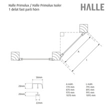 Väggparti fast HALLE Primolux standard med ventilationslucka vit hörn 770X1990mm