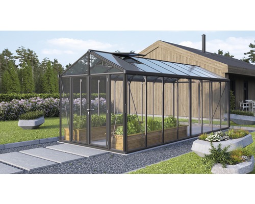 Växthus VITAVIA Poseidon 15700 3mm härdat glas 10mm polykarbonattak 258x614cm 15,7m² svart