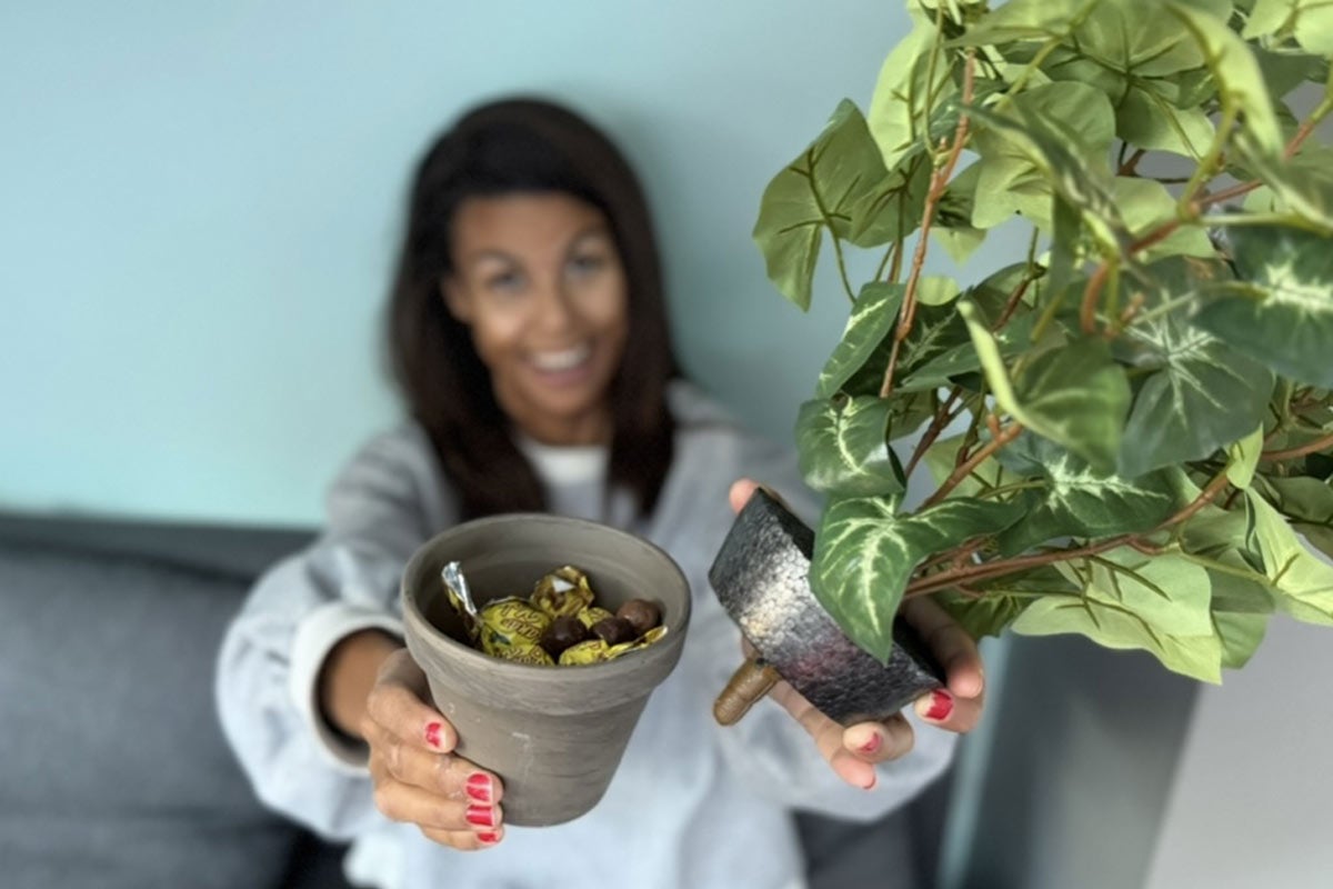 Medan färgen torkade fixade jag en konstväxt + lite fantasi = hemlig förvaring för snacks. Stilpoäng och sockerchock i ett!