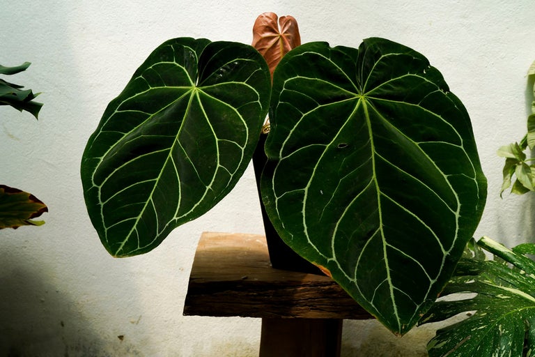 En mer ovanlig och exklusiv art med mörkgröna, sammetslena blad och tydligt vita nerver. Den blommar mer diskret men odlas främst för sitt spektakulära bladverk – en favorit bland samlare.
