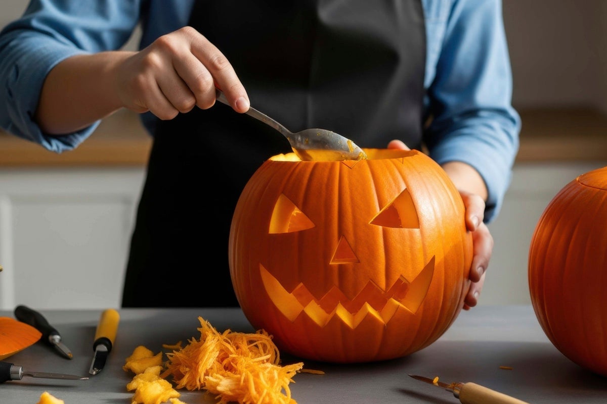Gör en egenkarvad halloweenpumpa i år! Kul och enkelt för både stora och små. Allt du behöver är en stor pumpa, en vass kniv, en sked och ett ljus. Här visar vi hur du gör en pumpalykta – steg för steg.