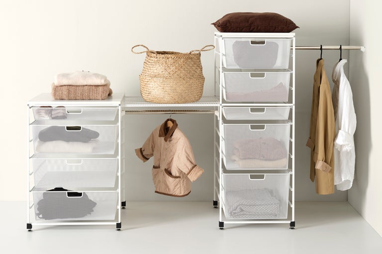 Elfa erbjuder olika typer av förvaringssystem; golvstående eller för montering på vägg eller dörr. Välj det system som passar ditt utrymme och dina behov bäst och addera sedan de förvaringsprodukter du behöver.